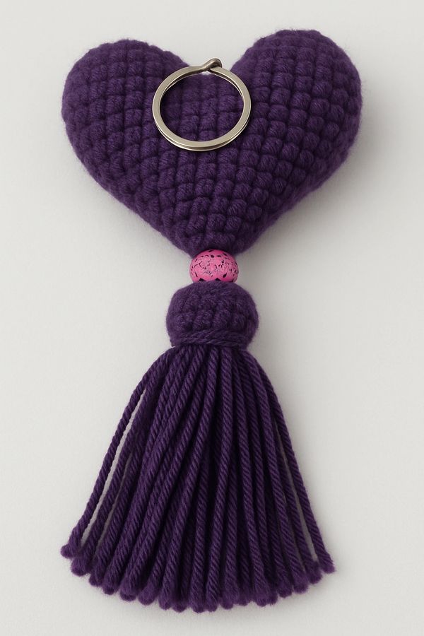 Purple Crocheted Heart Keychain with Tassel and Bead