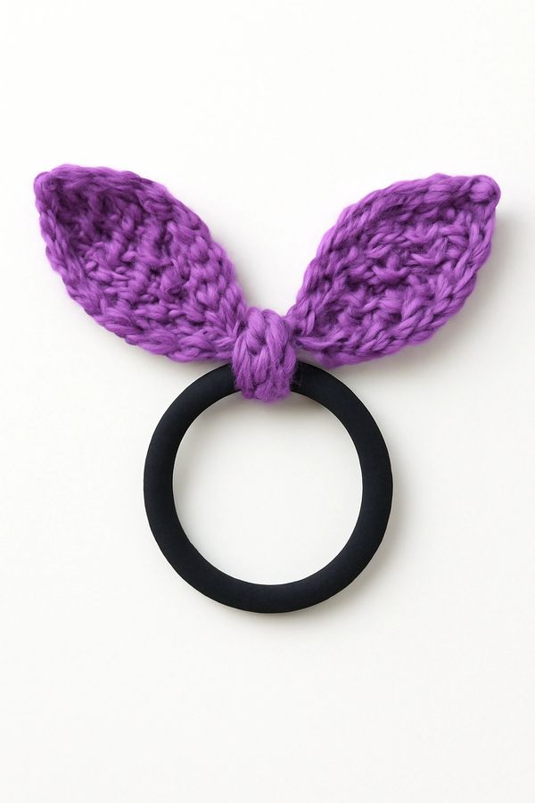 Crocheted Purple Bunny Ear Hair Tie With Black Ring